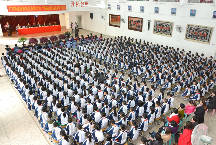 董事长助理郑林栋先生与广东省基金会、潮阳区、潮阳区教育局、各捐赠学校领导及学生代表合影