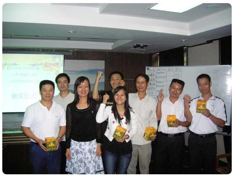 为给员工营造一个更为舒心的办公环境,为增强个人礼仪修养,塑造良好的职业形象,规范办公行为礼仪,熏陶气质内涵,我公司于2007年10月13日(星期六)在广东省外经贸大厦附楼2F会议室举办了一个颇具规模的《职业形象与商务礼仪》知识培训。培训期间,参训人员划分为八个小组,在陈毓敏老师生动、活跃的课堂氛围下汲知识,学礼仪,踊跃发言,积极参与各项游戏活动,其中 TOP队的表现尤为突出,最终TOP队在其队长郑继良的带领,及队员肖文林、苏林钗、蔡俊国、陈建荣、林青松、张云华的积极配合下,该队以压倒性分数勇夺冠军宝座,各获得纪念性精美冠军礼品一份。