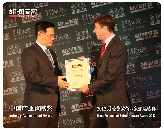 董事长郑继坤获颁“胡润百富最受尊敬企业家———产业贡献奖”